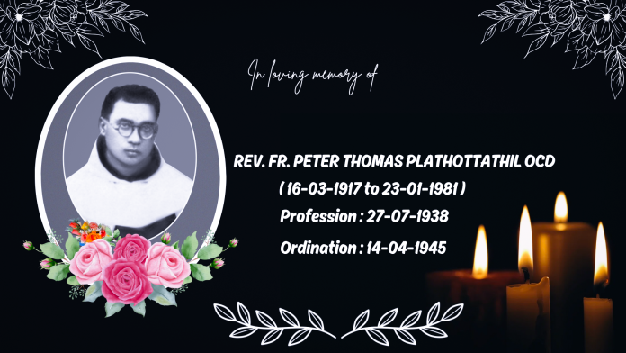 Rev. Fr. Peter Thomas Plathottathil OCD of St. Ann, passed away on 23rd January, 1981, at the age of 64 in 43rd year of his Profession.